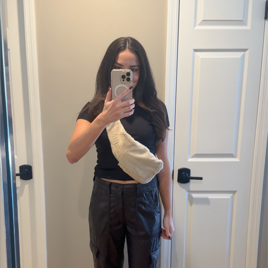 "Das ist wirklich soooo gut! Ich war überrascht, wie gut die Qualität des Materials ist, und es ist so schön und weich. Ich trage es den ganzen Tag mit der kleinen Wärmflasche vorne oder hinten, je nachdem, was mein Körper möchte!"